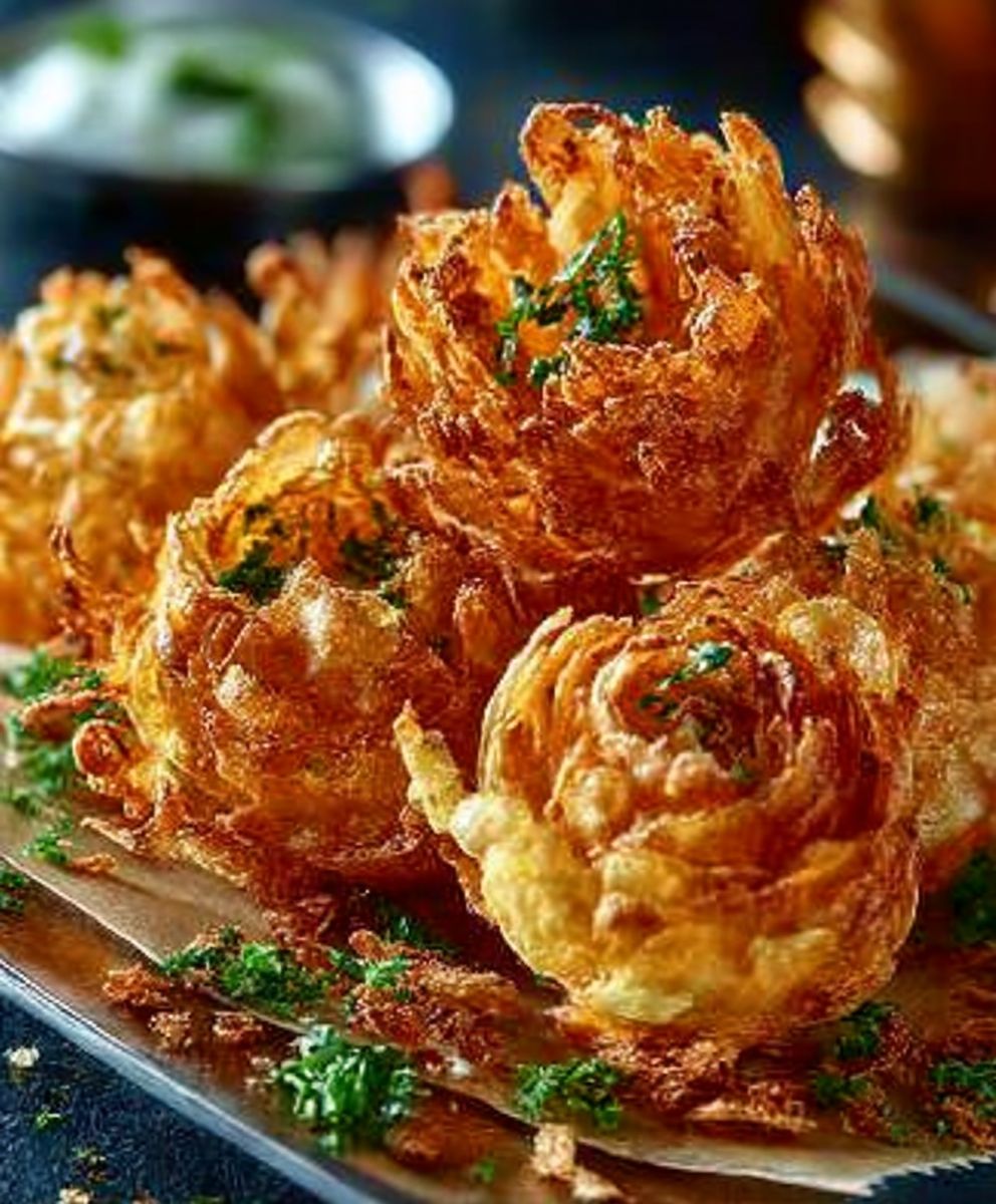 - Elevate your snacking game by serving these crispy mini blooming onions warm alongside a creamy dill dip, smoky chipotle mayo, or a classic ranch for an irresistible treat.