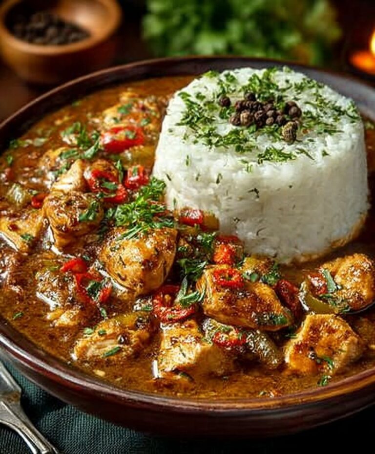 Unveil the soul of Louisiana with this Authentic Chicken Étouffée. Master the deep, ‘peanut butter’ roux, then simmer tender chicken, onion, and bell pepper for rich, comforting flavor.
