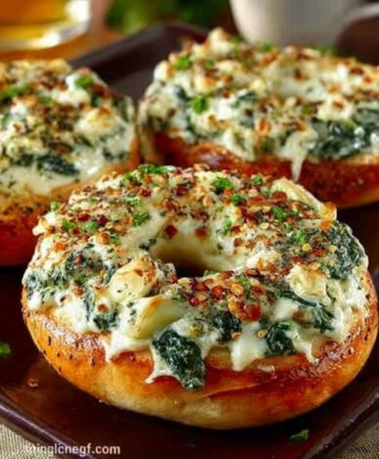 These aren’t just a snack; they’re a statement. Sophisticated enough to impress at a special gathering, yet comforting enough for a solo moment of pure indulgence. Preparing these Cheesy Spinach-Artichoke Bagels promises to banish breakfast boredom forever, turning simple into spectacular and making every morning feel like a celebration. Get ready to elevate your bagel game beyond expectation and discover a new, utterly delicious favorite. Your taste buds (and your Instagram feed) will thank you!