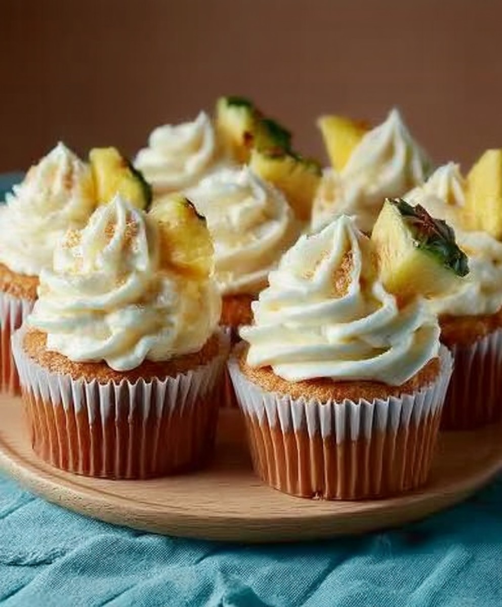 - Step 5: Once the cupcakes are completely cooled, pipe or spread a generous amount of the pineapple cream cheese frosting onto each cupcake. For an extra touch, you can garnish with a small fresh pineapple wedge or a maraschino cherry before serving.