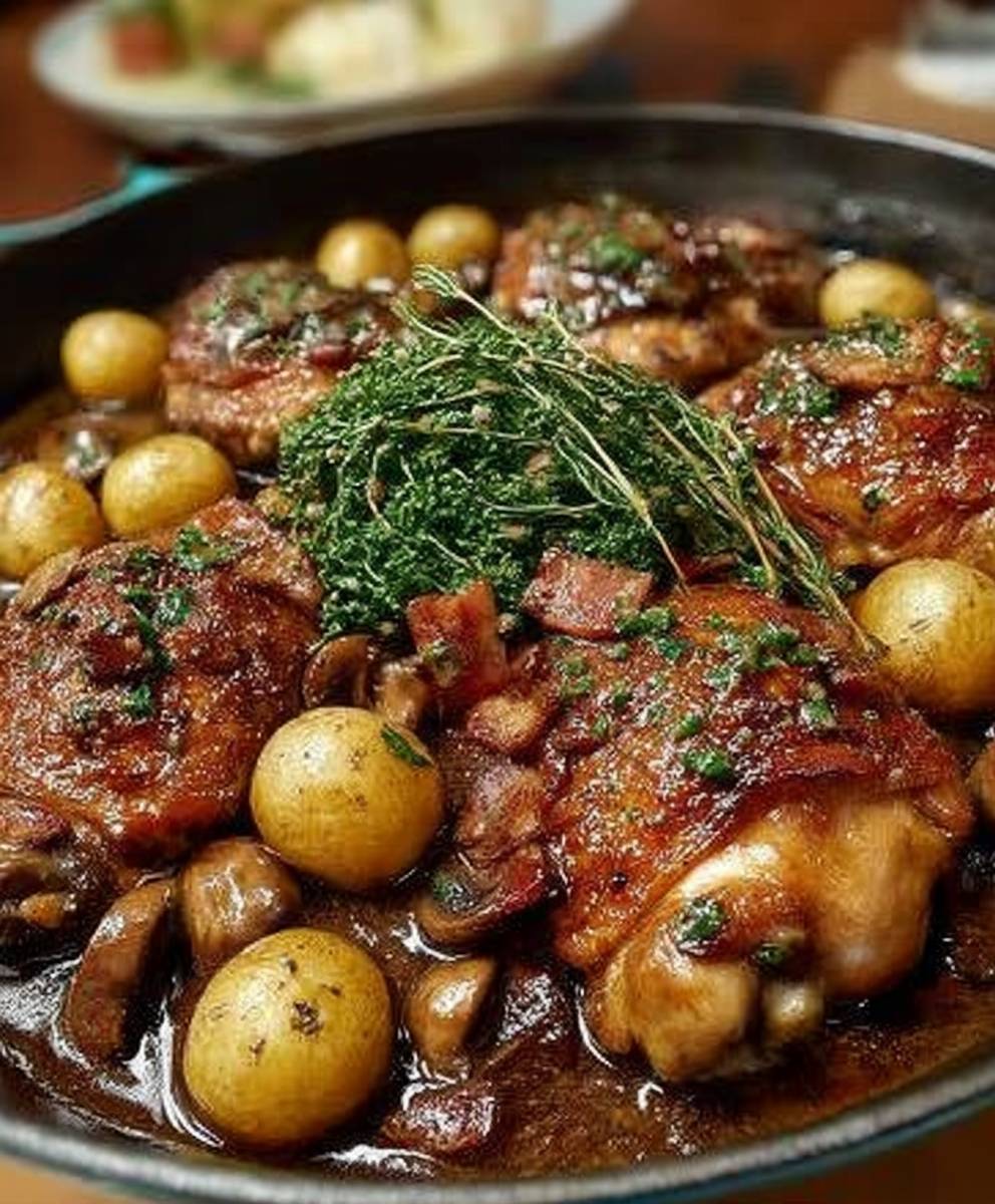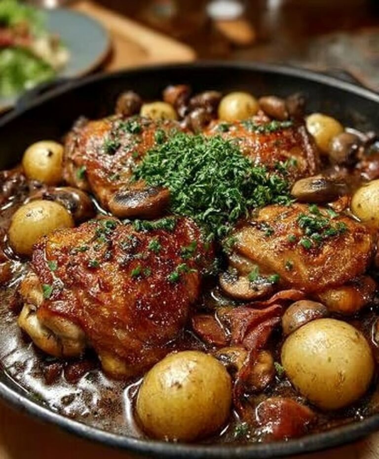 But let me tell you a little secret: mastering an exquisite French Coq au Vin is far simpler than those fancy culinary shows make it seem. This isn’t just a meal; it’s a warm, comforting embrace from the heart of France, delivered right to your dining table. Forget the daunting reputation; this particular French Coq au Vin is designed for joy, not culinary stress. We’re talking succulent chicken, tenderly braised until it practically melts, soaking up a symphony of rich, earthy flavors.