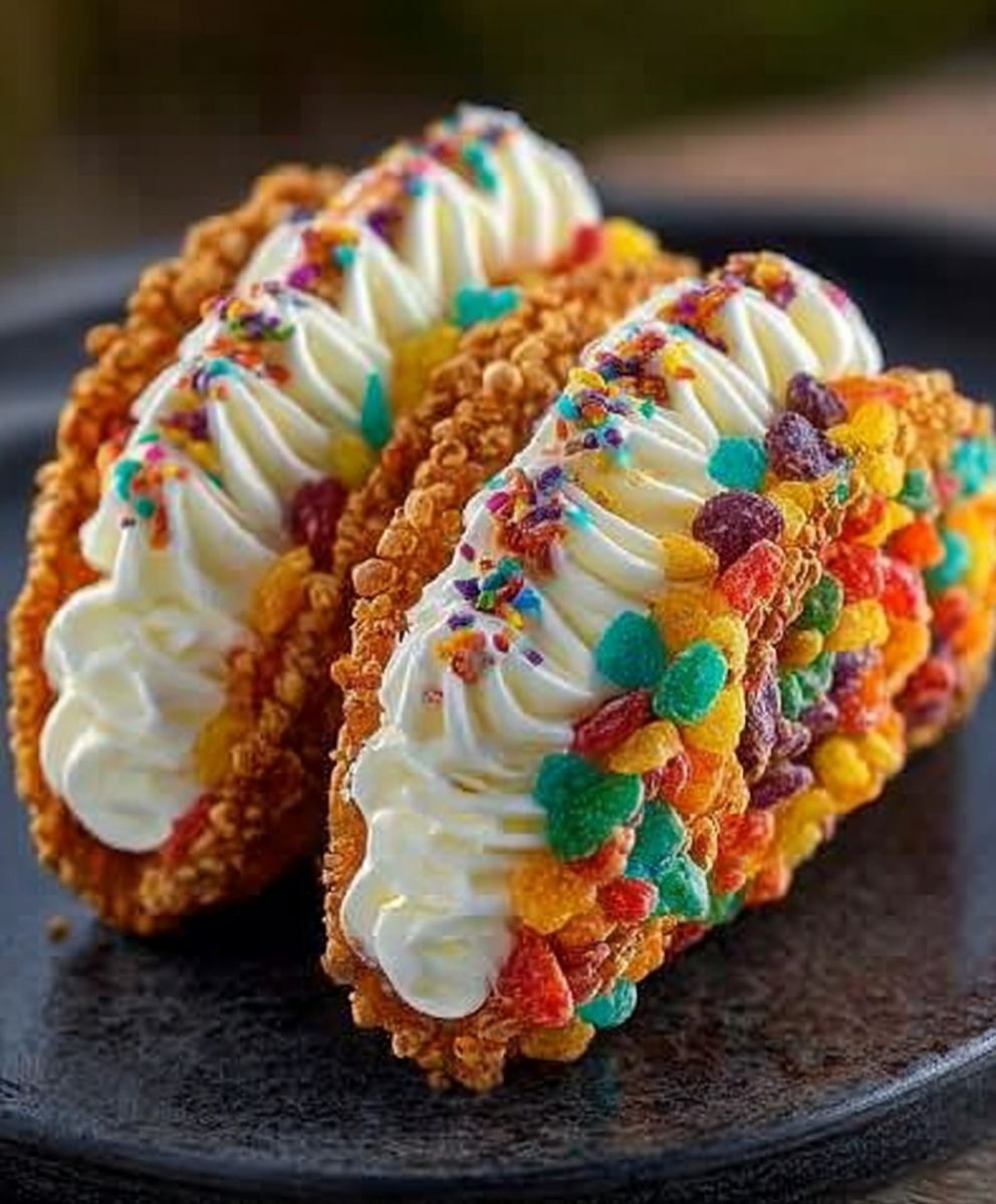 Fruity Pebbles Cheesecake Tacos: A Technicolor Dream for Your Taste Buds!