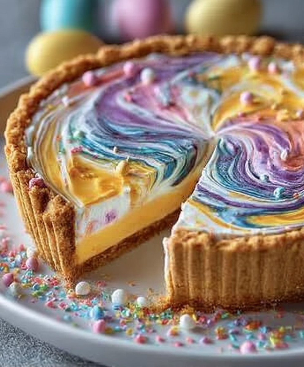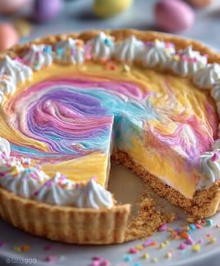 Pastel Spring Festival Swirl Pie Recipe – Easy No-Bake Dessert