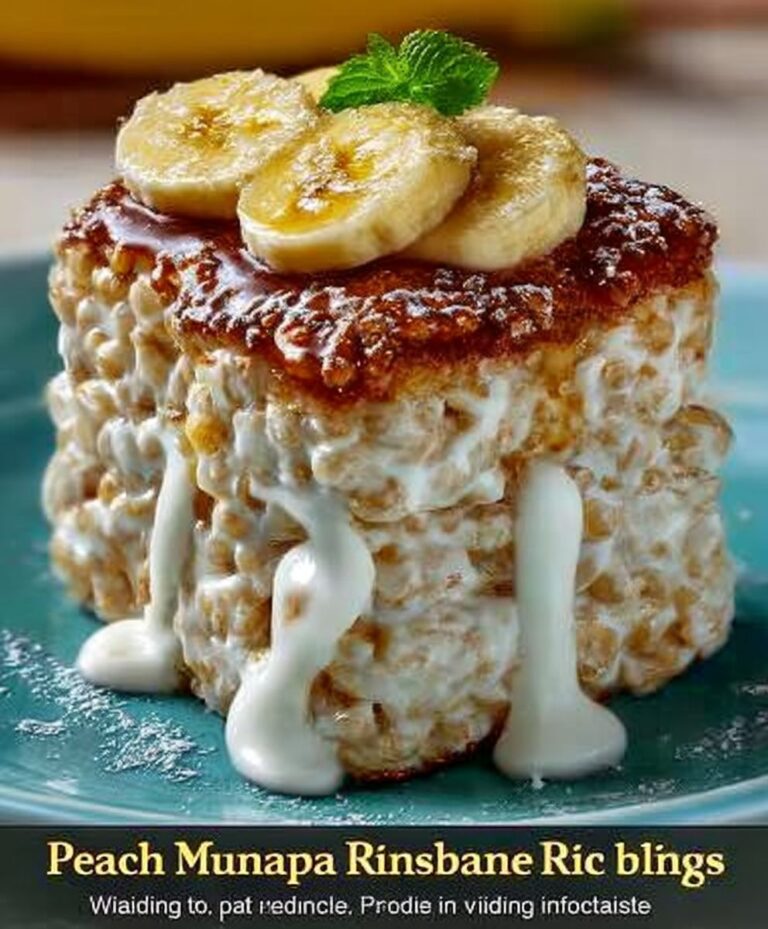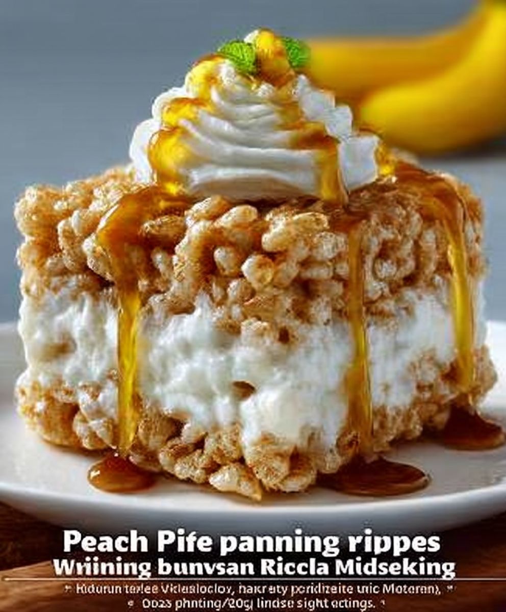 In the vast universe of desserts, sometimes the most magical creations emerge from unexpected fusions. Prepare yourself for a sweet revelation that brings together the sun-kissed charm of peach pie, the comforting swirl of cinnamon rolls, the creamy dreaminess of banana pudding, and the playful snap of rice krispies. This isn’t just a dessert; it’s an adventure for your taste buds, a delightful journey into layers of pure joy.