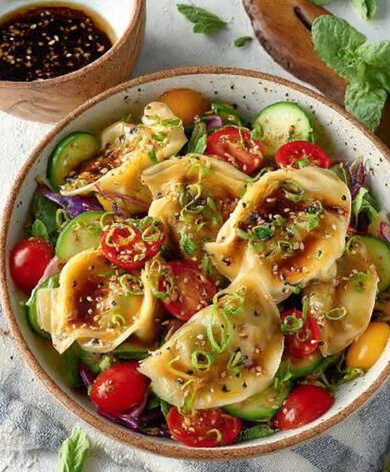 Craving something fresh yet satisfying? This Potsticker Salad perfectly blends crispy, savory potstickers with vibrant greens and a tangy rice vinegar dressing.