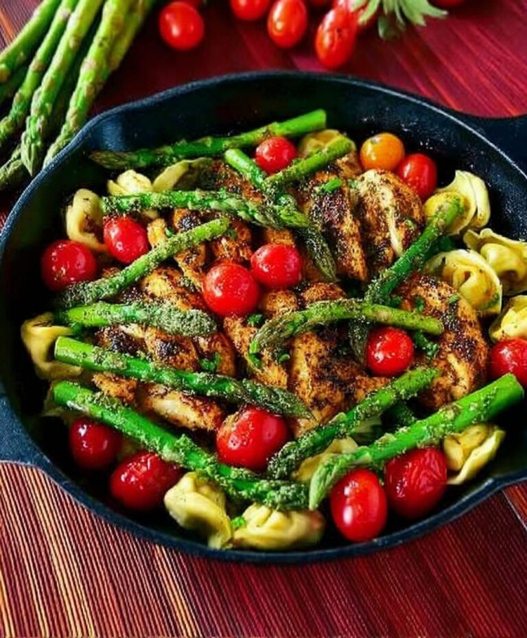 Imagine tender, juicy chicken pieces mingling beautifully with pillowy, cheese-filled tortellini, all brought to life by the aromatic embrace of rich basil pesto. This delightful canvas is then adorned with crisp, green asparagus spears and sweet, bursting cherry tomatoes, creating a symphony of textures and tastes. Each bite offers a burst of Mediterranean sunshine, a perfect harmony of savory protein, comforting pasta, and wholesome, garden-fresh vegetables. It’s a complete meal, lovingly designed to nourish and satisfy every palate.