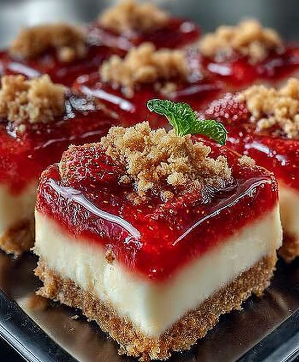 Strawberry Crunch Cheesecake Bites – Creamy Cheesecake with Crunchy Topping: Where Creamy Meets Crunchy in Berry Bliss!