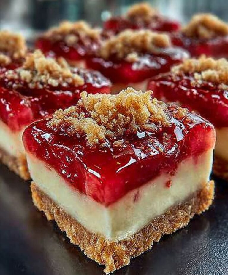 Strawberry Crunch Cheesecake Bites – Creamy Cheesecake with Crunchy Topping: Where Creamy Meets Crunchy in Berry Bliss!